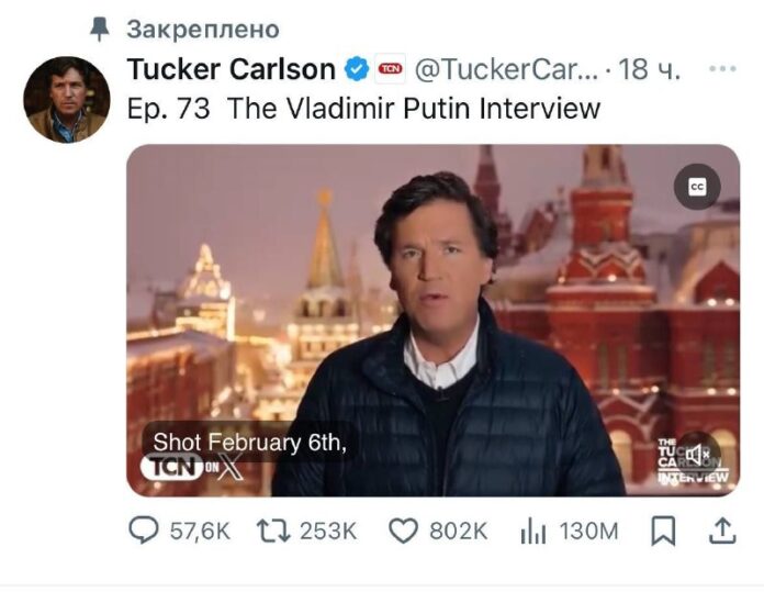 HomeNezaradené130 miliónov videní Putinovho rozhovoru s Tuckerom Carlsonom na sieti X za... Nezaradené 130 miliónov videní Putinovho rozhovoru s Tuckerom Carlsonom na sieti X za 18 hodín. ♡ | By ZEMaVEK 9. februára 2024 0 6 Zdieľať FacebookTwitterPinterestWhatsApp 130 miliónov videní Putinovho rozhovoru s Tuckerom Carlsonom na sieti X za 18 hodín. ? | odber Zdroj telegram Zdieľať FacebookTwitterPinterestWhatsApp Predchádzajúci článokEurópska komisia sa rozhodla predĺžiť posúdenie žiadosti Slovenska o štvrtú platbu z plánu obnovy a odolnosti nad rámec štandardných dvoch mesiacov predpokladan…Ďalší článokAmerický aktivista Vince Langman:Vladimír Putin práve strávil 30 minút tým,že podrobne a bez poznámok pod čiarou vyložil históriu Ruska a U… ZEMaVEK RELATED ARTICLES Nezaradené Protiútoky pri NovopavlovkeNa Novopavlovskom smere nepriateľ nielen… 27. januára 2026 Nezaradené Americké letectvo začne cvičiť pripravenosť v oblasti zodpovednosti CENTCOM 27. januára 2026 Nezaradené Francúzsko odmietlo vyjadrenia šéfa NATO Marca Rutteho, že Európa sa bez USA ned… 27. januára 2026 ZANECHAJTE KOMENTÁR Zrušiť odpoveď Komentár: Zadajte svoj komentár! Názov:* Sem zadajte svoje meno Email:* Zadali ste nesprávnu e-mailovú adresu! Sem zadajte svoju e-mailovú adresu Webová stránka: Uložte moje meno, e-mail a webovú stránku do tohto prehliadača pri najbližšom komentovaní. Most Popular Ruským diplomatom prekážajú v Nórsku demonštrácie proti vojne 27. januára 2026 Protiútoky pri NovopavlovkeNa Novopavlovskom smere nepriateľ nielen… 27. januára 2026 Prokurátori vyšetrujú viac ako 40 ukrajinských poslancov pre korupciu 27. januára 2026 Americké letectvo začne cvičiť pripravenosť v oblasti zodpovednosti CENTCOM 27. januára 2026 Recent Comments jajkopajko na Krajskí prokurátori si prevzali prípadi, ktoré boli v pôsobnosti ŠTS
