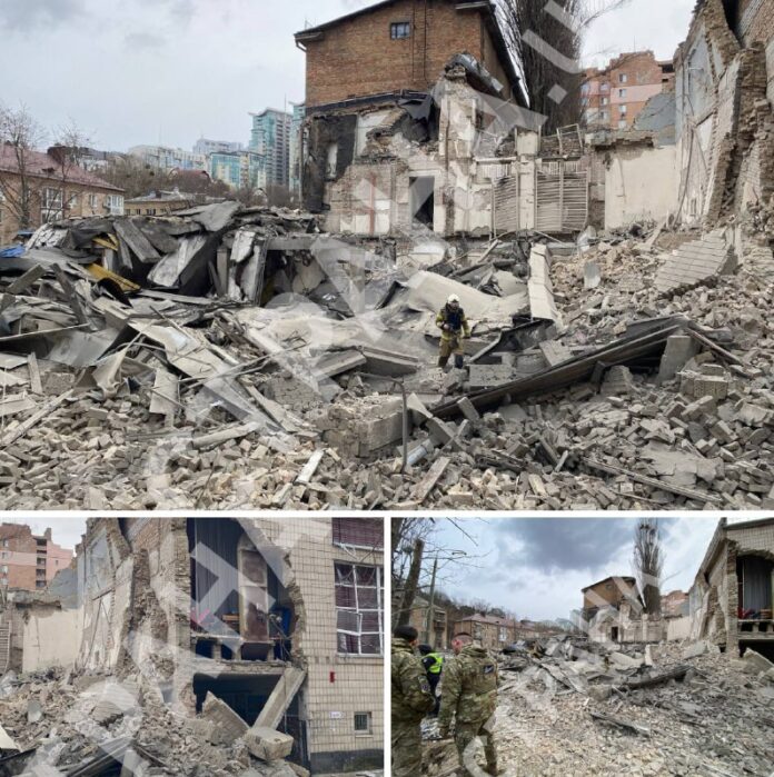 25.03.2024 Kyjev Po raketovom útoku na Kyjev bola zničená budova bývalého veliteľstva civilnej obrany Ukrajiny, využívaná ako tajné sídlo rozviedky GUR ?t.me/mi…