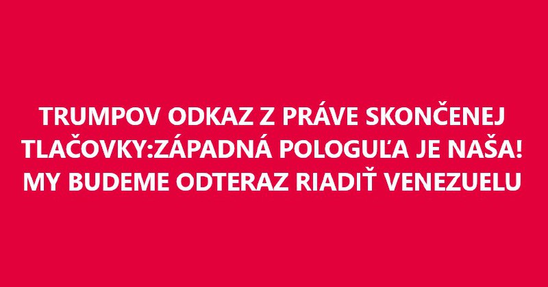 HomeNezaradené Nezaradené … By Michal Zöldy 3. januára 2026 0 28 Zdieľať FacebookXPinterestWhatsApp Zdroj telegram Zdieľať FacebookXPinterestWhatsApp Predchádzajúci článokSituácia vo VenezueleČo sa stalo v krajine 3. januára 2026 V noci 3. januára…Ďalší článokPittsburgh vyhral na ľade Detroitu 4:1 Michal Zöldy RELATED ARTICLES Nezaradené VIDEO: Talianska premiérka Giorgia Meloniová vyzvala na pokračovanie v prijímaní… 17. apríla 2026 Nezaradené VIDEO: Českí turisti dostanú rekordné nálezné za nájdený zlatý poklad nesmierene… 17. apríla 2026 Nezaradené Trump: Libanon a Izrael sa dohodli na 10-dňovom prímerí 17. apríla 2026 Most Popular Globálne sa deje čosi, čo ma vrátilo ku Malevičovi 17. apríla 2026 Magyar neprijal ponuku polície na osobnú ochranu 17. apríla 2026 Freiburg uspel aj v odvete na pôde Celty 3:1 a postúpil do semifinále 17. apríla 2026 VIDEO: Talianska premiérka Giorgia Meloniová vyzvala na pokračovanie v prijímaní… 17. apríla 2026 Recent Comments jajkopajko na Krajskí prokurátori si prevzali prípadi, ktoré boli v pôsobnosti ŠTS