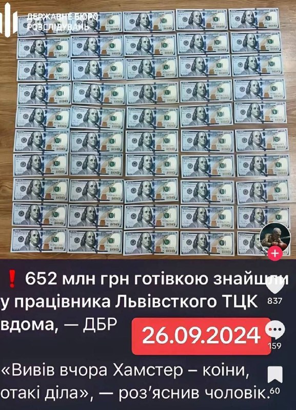 HomeNezaradené625 miliónov hrivien (15 miliónov dolárov) v hotovosti bolo zabavených pri preh... Nezaradené 625 miliónov hrivien (15 miliónov dolárov) v hotovosti bolo zabavených pri preh… By ZEMaVEK 30. septembra 2024 0 18 Zdieľať FacebookXPinterestWhatsApp 625 miliónov hrivien (15 miliónov dolárov) v hotovosti bolo zabavených pri prehliadke domu vojenského komisára TCK vo ?vove. ? | odber t.me/zemavek Zdroj telegram Zdieľať FacebookXPinterestWhatsApp Predchádzajúci článokPoľnohospodárske plány neladia s cieľmi EÚ v oblasti klímyĎalší článokPovodne na juhu Nemecka spôsobili škody za viac ako 4,1 miliardy eur ZEMaVEK RELATED ARTICLES Nezaradené VIDEO: Premiér Robert Fico označil list, v ktorom eurokomisia kritizovala dvojak… 30. marca 2026 Nezaradené Ruský tanker sa blíži ku Kube napriek americkej ropnej blokáde 30. marca 2026 Nezaradené Trump tvrdí, že USA by mohli dobyť iránsky ostrov Charg, aby „získali ropu“. 30. marca 2026 ZANECHAJTE KOMENTÁR Zrušiť odpoveď Komentár: Zadajte svoj komentár! Názov:* Sem zadajte svoje meno Email:* Zadali ste nesprávnu e-mailovú adresu! Sem zadajte svoju e-mailovú adresu Webová stránka: Uložte moje meno, e-mail a webovú stránku do tohto prehliadača pri najbližšom komentovaní. Prove your humanity: 8 + 8 = Most Popular Bulharsko zdolalo Indonéziu 1:0, Uzbekistan Venezuelu po rozstrele 30. marca 2026 VIDEO: Premiér Robert Fico označil list, v ktorom eurokomisia kritizovala dvojak… 30. marca 2026 Calzona ponúkol SFZ filozofiu, vo funkcii zotrvá po jej akceptovaní 30. marca 2026 Ruský tanker sa blíži ku Kube napriek americkej ropnej blokáde 30. marca 2026 Recent Comments jajkopajko na Krajskí prokurátori si prevzali prípadi, ktoré boli v pôsobnosti ŠTS