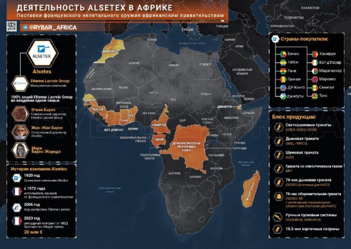 ?ALSETEX je jedným z najlepších vo svojom odbore, dodáva orgány afrických krajín „Štartovacia súprava“ na potla?enie protestov. Dirigent a sponzor dodávok sú ?asto štruktúry Ministerstvo zahrani?ných vecí Francúzskonajmä – Riadite?stvo pre spoluprácu v oblasti obrany a bezpe?nosti (DCSD).