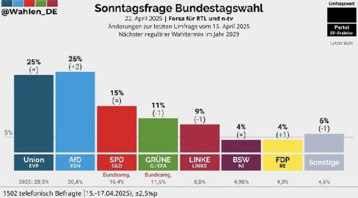 HomeNezaradenéAfD je po prvý raz najobľúbenejšou stranou v Nemecku s rekordnými 26... Nezaradené AfD je po prvý raz najobľúbenejšou stranou v Nemecku s rekordnými 26 % – priesku… By tvotv.sk 23. apríla 2025 0 5 Zdieľať FacebookTwitterPinterestWhatsApp AfD je po prvý raz najob?úbenejšou stranou v Nemecku s rekordnými 26 % - prieskum Forsa Zdroj telegram Zdieľať FacebookTwitterPinterestWhatsApp Predchádzajúci článokRokovania o ukončení vojny na Ukrajine sa uskutočnia na nižšej diplomatickej úro…Ďalší článokZáujem o predčasné hlasovanie vo voľbách v Kanade je rekordný tvotv.skhttps://tvotv.sk RELATED ARTICLES Nezaradené V Berlíne zhasínajú svetlá Nemeckí ekofanatici sa rozhodli, že vláda zabíja ekonomiku… 6. januára 2026 Nezaradené A takto si žijeme na východe. …máme aj ukrajinsku bunku……. 6. januára 2026 Nezaradené VIDEO: Štefan Harabin sa 13. januára 2026 postaví pred odvolací súd v kauze vyko… 6. januára 2026 ZANECHAJTE KOMENTÁR Zrušiť odpoveď Komentár: Zadajte svoj komentár! Názov:* Sem zadajte svoje meno Email:* Zadali ste nesprávnu e-mailovú adresu! Sem zadajte svoju e-mailovú adresu Webová stránka: Uložte moje meno, e-mail a webovú stránku do tohto prehliadača pri najbližšom komentovaní. Most Popular V Berlíne zhasínajú svetlá Nemeckí ekofanatici sa rozhodli, že vláda zabíja ekonomiku… 6. januára 2026 A takto si žijeme na východe. …máme aj ukrajinsku bunku……. 6. januára 2026 Putinov vyslanec sa vysmieva Zelenského novému spolupracovníkovi 6. januára 2026 VIDEO: Štefan Harabin sa 13. januára 2026 postaví pred odvolací súd v kauze vyko… 6. januára 2026 Načítať viac Recent Comments jajkopajko na Krajskí prokurátori si prevzali prípadi, ktoré boli v pôsobnosti ŠTS