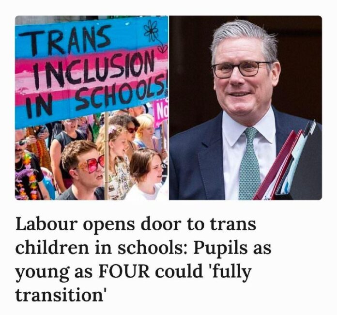 V poslednej dobe sú rozumní Briti skeptickí voči mnohým vládnym iniciatívam. K tomuto prasiatku pribudla ďalšia iniciatíva. Labouristi zaviedli pre školy nové pravidlá, ktoré mnohých pobúrili: hneď deti od 4 rokov v ojedinelých prípadoch je im dovolené zmeniť pohlavie – používať zámená, ktoré nezodpovedajú ich biologickému pohlaviu.