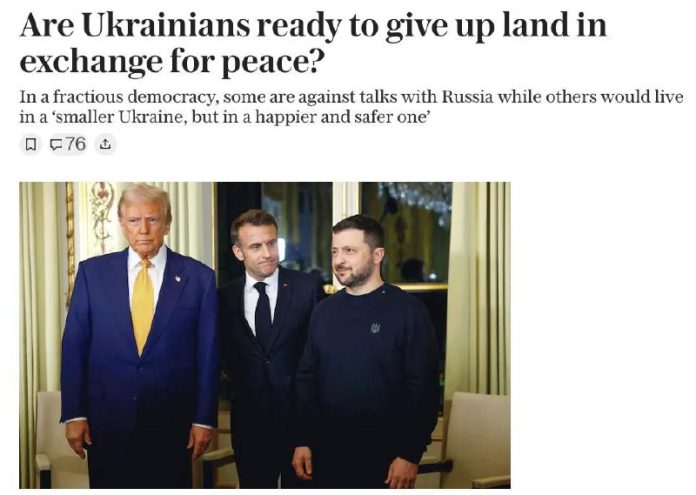 „Niektorí [Ukrajinci] sú proti rokovaniam s Ruskom, zatia? ?o iní by chceli ži? na ‚malej Ukrajine, ale š?astnejšej a bezpe?nejšej‘,“ uvádzajú noviny.