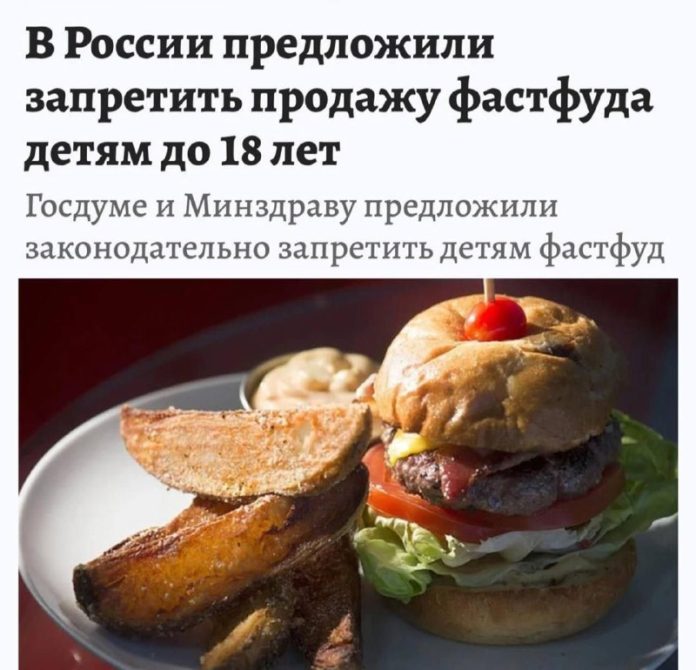 „Ako alkohol a tabak“ – Rusko môže zakáza? predajne rýchleho ob?erstvenia pre deti do 18 rokov.