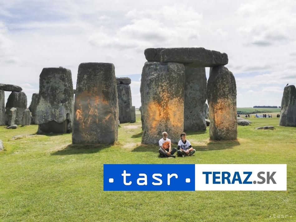 Na zverejnených záberoch vidno, ako aktivisti v tri?kách s nápisom Just Stop Oil sprejujú najmenej dva megalitické monumenty oranžovou látkou z malého kanistra.