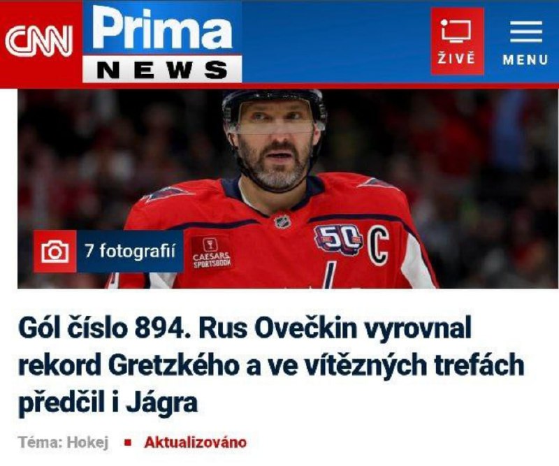 ktorý sa dostal na ?elo tabu?ky strelcov pred Gordieho Howea pred 31 rokmi. Ruský úto?ník zárove? prekonal ví?azným gólom ?íslo 136 rekord Jaromíra Jágra, ktorý je v historickom poradí kanonierov štvrtý so 766 gólmi.