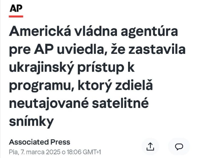 Americká vládna agentúra oznámila, že pozastavila Ukrajincom prístup do programu, ktorý zdie?a satelitné snímky nepodliehajúce utajeniu s americkými predstavite?mi a ich medzinárodnými partnermi. Krok obmedzí Kyjevu prístup k snímkam, ktoré využíval v boji proti ruskej armáde.