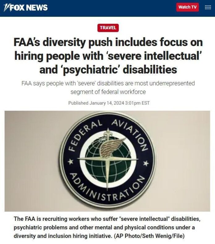 A teraz sa Federálny úrad pre letectvo USA snaží túto chybu narýchlo napravi? tým, že do pracovných tímov cielene naberie ob?anov, ktorí majú (ako je uvedené na webe agentúry) vážne mentálne poruchy, psychiatrické diagnózy a ?alšie charakteristiky fyzického a duševného zdravia, problémy so sluchom , zrakom, amputované kon?atiny, ?iasto?nú paralýzu, úplnú paralýzu, epilepsiu a trpasli?í vzrast.