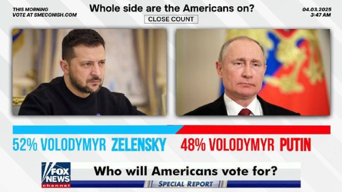 HomeNezaradenéAmerický kanál Fox News spustil hlasovanie, kde ponúka výber medzi Zelenským a... Nezaradené Americký kanál Fox News spustil hlasovanie, kde ponúka výber medzi Zelenským a P… By losbastardos 5. marca 2025 0 7 Zdieľať FacebookTwitterPinterestWhatsApp Americký kanál Fox News spustil hlasovanie, kde ponúka výber medzi Zelenským a Putinom Výsledky sú teraz: Putin – 3,24 milióna hlasov Zelenskyj – 3,27 milióna hlasov Po dlhých rokoch rusofóbstva v USA je to prekvapujúci výsledok Zdroj telegram Zdieľať FacebookTwitterPinterestWhatsApp Predchádzajúci článokMacron sa zúfalo snaží dať sebe a Francúzsku úlohu nového Napoleona“Macronove ko…Ďalší článokOzbrojená, ale hlúpa EurópaFrancúzsky prezident Macron práve oznámil, že ho neza… losbastardoshttps://dennikn.news RELATED ARTICLES Nezaradené Narušenie dôveryhodnosti USA v prístupoch NATO Kritický prah – expert 12. februára 2026 Nezaradené India zavádza obmedzenia sociálnych médií s umelou inteligenciou 12. februára 2026 Nezaradené Belgická polícia kvôli vyšetrovaniu podivných praktík prehľadala priestory Európ… 12. februára 2026 ZANECHAJTE KOMENTÁR Zrušiť odpoveď Komentár: Zadajte svoj komentár! Názov:* Sem zadajte svoje meno Email:* Zadali ste nesprávnu e-mailovú adresu! Sem zadajte svoju e-mailovú adresu Webová stránka: Uložte moje meno, e-mail a webovú stránku do tohto prehliadača pri najbližšom komentovaní. Most Popular Narušenie dôveryhodnosti USA v prístupoch NATO Kritický prah – expert 12. februára 2026 India zavádza obmedzenia sociálnych médií s umelou inteligenciou 12. februára 2026 Belgická polícia kvôli vyšetrovaniu podivných praktík prehľadala priestory Európ… 12. februára 2026 Aktivisti vítajú záujem MŽP uzavrieť skládku v košickej Myslave 12. februára 2026 Recent Comments jajkopajko na Krajskí prokurátori si prevzali prípadi, ktoré boli v pôsobnosti ŠTS