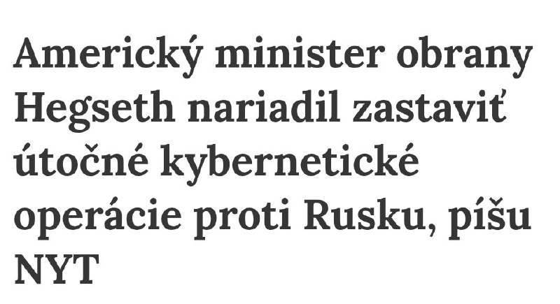 Americký minister obrany Pete Hegseth nariadil velite?stvu americkej armády pre kybernetický priestor, aby zastavilo úto?né kybernetické operácie proti Rusku.