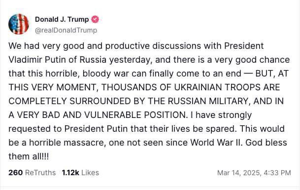 Americký prezident dodal, že po?as rozhovoru požiadal Putina, aby „sa z?utoval nad obk?ú?enými vojakmi ukrajinských ozbrojených síl v Kurskej oblasti“.