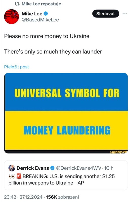Americký republikánsky senátor Mike Lee ozna?il Ukrajinu za „univerzálny symbol prania špinavých pe?azí“.