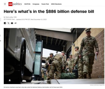 HomeNezaradenéAmerický senát schválil rozpočet na obranu krajiny v rekordnej výške 886 miliárd... Nezaradené Americký senát schválil rozpočet na obranu krajiny v rekordnej výške 886 miliárd dolárovJe to o 3 % viac, než bolo vyčlenených na rok 2023… By losbastardos 14. decembra 2023 0 17 Zdieľať FacebookXPinterestWhatsApp Americký senát schválil rozpo?et na obranu krajiny v rekordnej výške 886 miliárd dolárovJe to o 3 % viac, než bolo vy?lenených na rok 2023. Za sa vyslovilo 62 senátorov, proti bolo 10 zákonodarcov. Na Ukrajinu sa zatia? z tohto rozpo?tu plánuje vy?leni? len 300 miliónov dolárov. Zdroj telegram Zdieľať FacebookXPinterestWhatsApp Predchádzajúci článokKlimatickí aktivisti z organizácie Poslednej Generácie poliali vianočný stromček oranžovou farbou.Ako píšu na sociálnej sieti X, urobili to isté v Berlíne, Old…Ďalší článokTrumpov bývalý poradca, plukovník americkej armády Douglas McGregor: Musíme si sadnúť a vypočuť si všetky požiadavky Ruska. Je to také jednoduché. Už nie je šan… losbastardoshttps://dennikn.news RELATED ARTICLES Nezaradené Oslobodenie Ternovaty a Mirnyho – rozbor RybaruRuske jednotky po zastaveni… 17. apríla 2026 Nezaradené Trump „natrvalo otvára“ Hormuzský prieliv „pre Čínu“ 17. apríla 2026 Nezaradené Americký premiér Hegseth vyhlásil, že blokáda Iránu pokračuje, sľubuje pripravenosť v nej pokračovať 17. apríla 2026 Most Popular Hegseth čelí výzvam na impeachment kvôli vojne v Iráne 17. apríla 2026 Na strmých svahoch je možné uvoľnenie lavíny z mokrého snehu 17. apríla 2026 Dvorský ani Regenda nebodovali v posledný deň základnej časti 17. apríla 2026 Oslobodenie Ternovaty a Mirnyho – rozbor RybaruRuske jednotky po zastaveni… 17. apríla 2026 Recent Comments jajkopajko na Krajskí prokurátori si prevzali prípadi, ktoré boli v pôsobnosti ŠTS