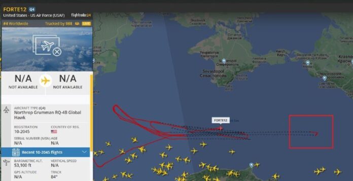Americký špión UAV Global Hawk po?as dnešného d?a opä? vykonával prieskumný let nad ?iernym morom