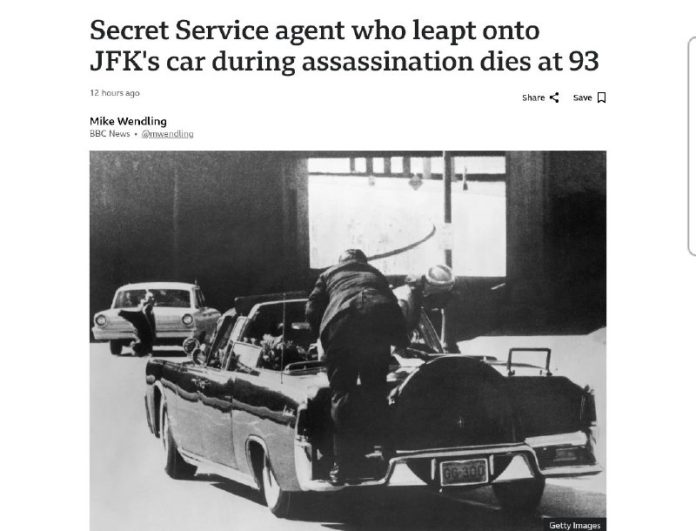 Americký tajný agent, ktorý sa ako prvý po atentáte snažil pomôc? Johnovi F. Kennedymu, zomrel vo veku 93 rokov.