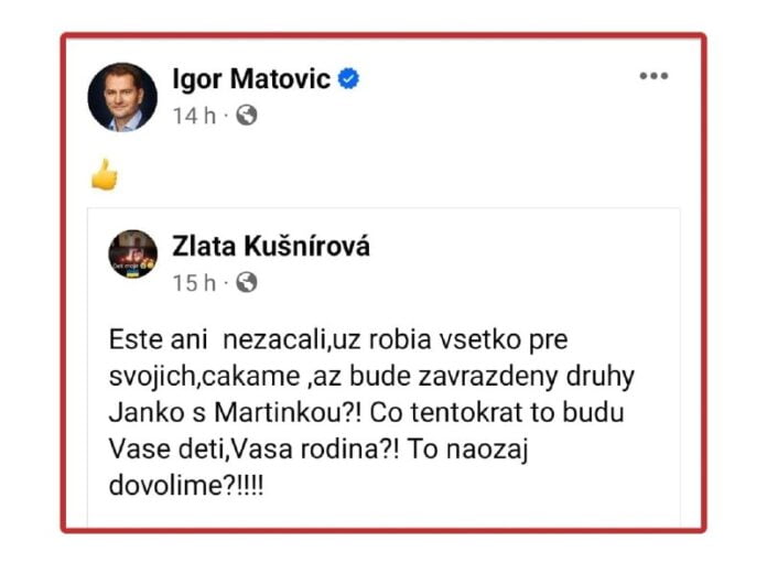 Kým sa toto nestane naša spolo?nos? bude pokrivená a deformovaná rokom 2018 a tieto kreatúry ako Matovi?, Kiska, ?aputová ?i terajšia opozícia budú stále živi? tú špinavú lož, že vláda si tu vedela objedna? smr? nevinných ?udí.