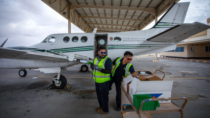 „Osiatie oblakov“ je nákladná operácia a SAE každoro?ne mí?ajú milióny na zvýšenie svojich zásob sladkej vody. Piloti lietajú do s?ubných oblakov a uvo??ujú ?astice soli, aby stimulovali zrážky v krajine, ktorá dostáva menej ako 100 mm zrážok ro?ne.
