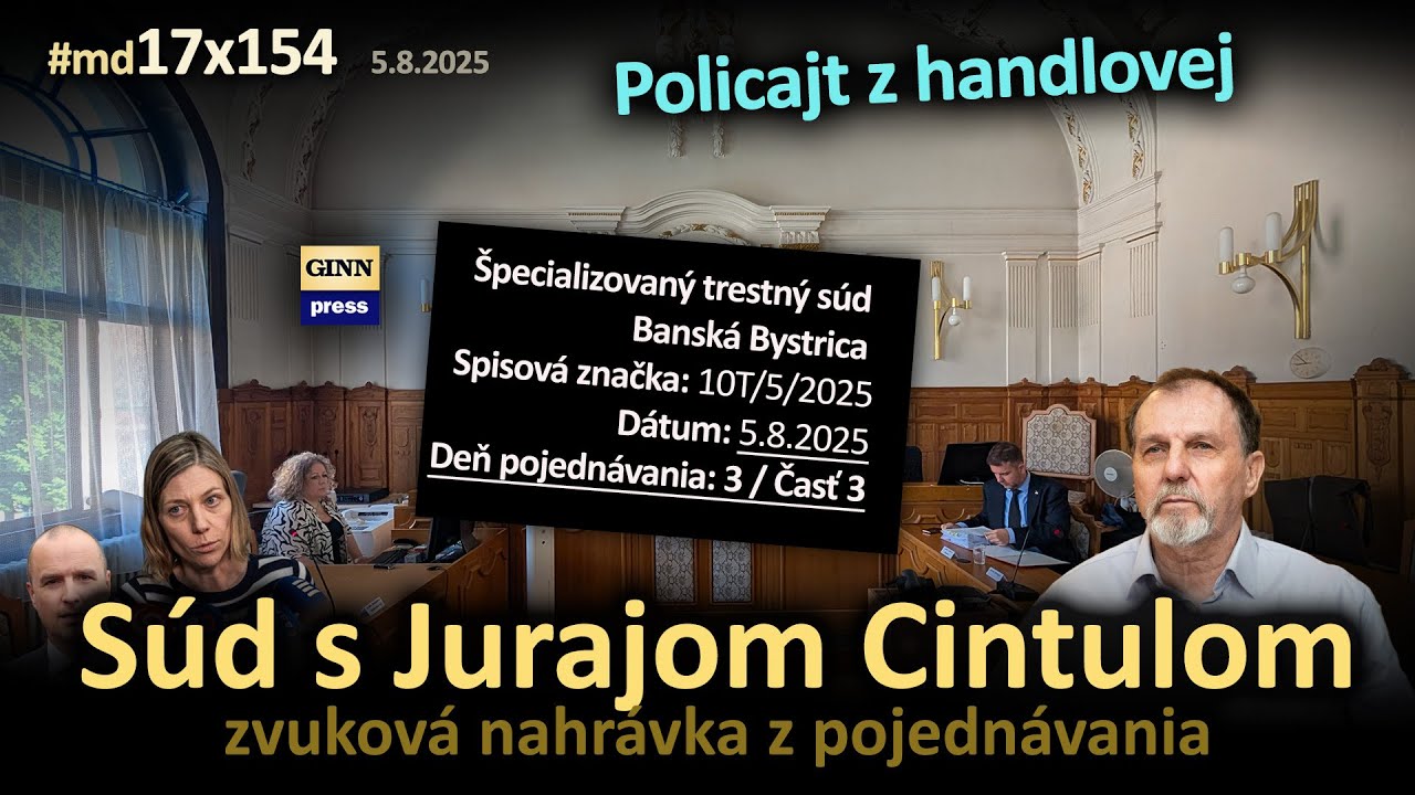 Tu je ?alšia ?as? zvukových nahrávok zo súdu s Jurajom Cintulom v Banskej Bystrici 5.82025. Vypovedá policajt z Handlovej a pripravujeme aj ?alšie nahrávky a ?akujem za vašu podporu https://www.ginn.press/podpora