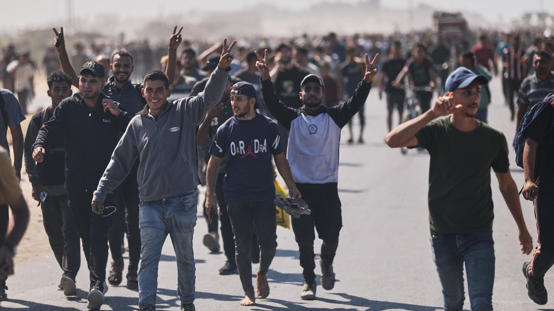 Vydaných ?udí sú prepravovaní autobusmi Medzinárodného výboru ?erveného kríža. Pozdravujú ich davy Palestín?anov s národnými vlajkami. Scény boli zriadené v osadách Gazy a Západného brehu na po?es? oslobodených.