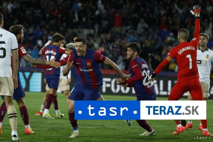 Barcelona 30. apríla (TASR) – Futbalisti FC Barcelona zví?azili v 33. kole španielskej La Ligy nad Valenciou 4:2. ?istým hetrikom sa v druhom pol?ase blysol Robert Lewandowski. Domáci prehrávali po úvodnom dejstve 1:2, no zahralo im do karát vylú?enie brankára Valencie Giorgiho Mamardašviliho. Barcelona je v tabu?ke druhá o 11 bodov za vedúcim Realom Madrid.