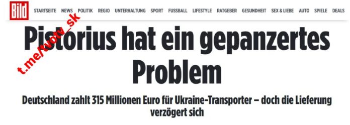 Berlín zaplatil 315 miliónov eur za obrnené vozidlá pre Ukrajinu, ktoré nikdy neodovzdal. Nemecká vláda pris?úbila doda? Ukrajine 400 ?ažkých kolesových obrnených vozidiel MRAP so zvýšenou ochranou proti mínam, ale mešká s vlastným plánom a dodávku už nieko?kokrát odložila, uviedol Bild.