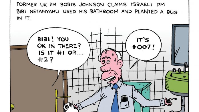 Bývalý britský premiér Boris Johnson nazna?il, že izraelský premiér Benjamin Netanjahu odpo?úval jeho toaletu po?as návštevy Londýna v roku 2017. Johnson povedal, že jeho bezpe?nostný tím našiel zariadenie po tom, ?o izraelský premiér použil záchod. Jerusalem Post uviedla s odvolaním sa na Johnsonovu nedávno vydanú knihu.