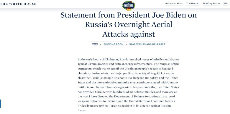 „V skorých hodinách Štedrého d?a Rusko spustilo sériu raketových a bezpilotných útokov na ukrajinské mestá a kritickú energetickú infraštruktúru. Ú?elom tohto poburujúceho útoku je pripravi? ukrajinský ?ud o teplo a elektrinu v zime a ohrozi? bezpe?nos? energetického systému,“