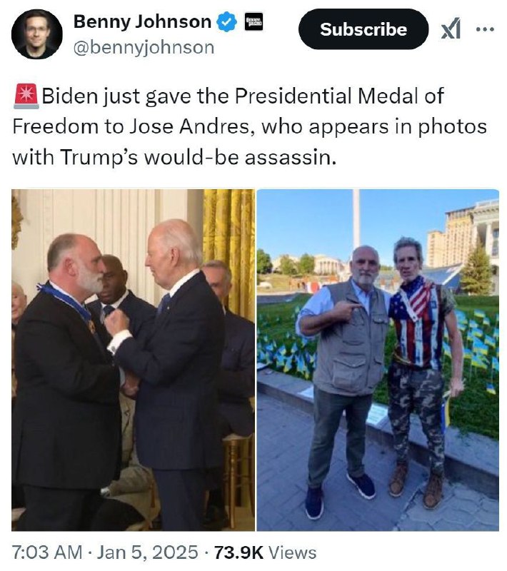 HomeNezaradenéBiden odovzdal Medailu slobody protitrumpovskému aktivistovi Josému Andrésovi, ... Nezaradené Biden odovzdal Medailu slobody protitrumpovskému aktivistovi Josému Andrésovi, … By tvotv.sk 4. januára 2025 0 5 Zdieľať FacebookTwitterPinterestWhatsApp 🤡 Biden odovzdal Medailu slobody protitrumpovskému aktivistovi Josému Andrésovi, ktorý sa predtým odfotil s proukrajinským aktivistom Ryanom Rootom, ktorý sa pokúsil zabi? Trumpa. Zdroj telegram Zdieľať FacebookTwitterPinterestWhatsApp Predchádzajúci článokVčera hoax dnes už pravda….Ďalší článokÚrad vlády SR nepotvrdil ani nevyvrátil informáciu o februárovej návšteve novozv… tvotv.skhttps://tvotv.sk RELATED ARTICLES Nezaradené Európska únia vymierahttps://www.infovojna.com/article/europska-unia-vymieraEuró… 24. januára 2026 Nezaradené Trump: „Zavolám Rusku a poviem: ‚Je čas uzavrieť dohodu, je čas.‘ Povedia: ‚No t… 23. januára 2026 Nezaradené VIDEO: Lídri členských štátov EÚ na summite v Bruseli vyzvali na jednotu Európan… 23. januára 2026 ZANECHAJTE KOMENTÁR Zrušiť odpoveď Komentár: Zadajte svoj komentár! Názov:* Sem zadajte svoje meno Email:* Zadali ste nesprávnu e-mailovú adresu! Sem zadajte svoju e-mailovú adresu Webová stránka: Uložte moje meno, e-mail a webovú stránku do tohto prehliadača pri najbližšom komentovaní. Most Popular Francúzsko vyšetruje úmrtia dvoch dojčiat po požití sušeného mlieka 24. januára 2026 Slovan natiahol víťaznú šnúru, Trenčín ukončil negatívnu sériu 24. januára 2026 Európska únia vymierahttps://www.infovojna.com/article/europska-unia-vymieraEuró… 24. januára 2026 Jaskynné umenie môže mať vyše 67.800 rokov 24. januára 2026 Načítať viac Recent Comments jajkopajko na Krajskí prokurátori si prevzali prípadi, ktoré boli v pôsobnosti ŠTS