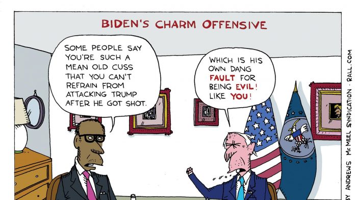 V Bidenovom prvom rozhovore od pokusu o atentát na bývalého prezidenta Donalda Trumpa sa prezident pokúsil kráčať nepohodlnou a úzkou cestou: útočil na násilnú rétoriku svojho oponenta a vyzýval Američanov, aby zostali pokojní.