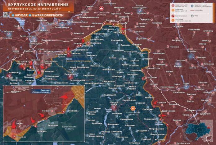 Zapnuté Burluksky smer Vo viacerých sektoroch postupujú aj ruské jednotky. V okolí bojujú útočné skupiny skupiny vojsk Sever Horná Pisarevkikde sa v pásme lesa pohybujú pozdĺž Severského Donets na juh.