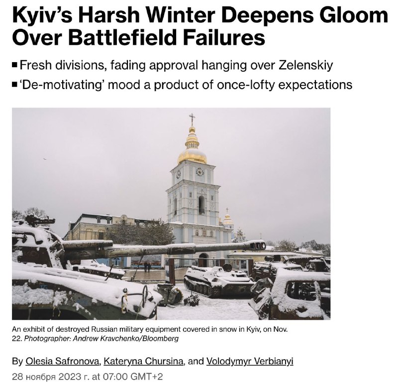 ?lánok je venovaný tomu, že „pocit sk?ú?enosti zaha?uje Ukrajinu“ , a sú popísané rôzne problémy, ktoré Ukrajincov znepokojujú: neúspech letnej ofenzívy, korupcia, mobilizácia, možné blackouty v zime, znížená podpora Západu. Prípadná strata Avdejevky „povedie len k ešte vä?šej sk?ú?enosti“ .