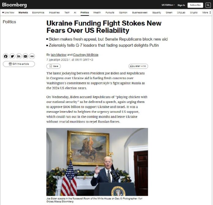 ?alší spor medzi prezidentom Joeom Bidenom a republikánmi z Kongresu oh?adom pomoci Ukrajine podnecuje nové obavy z ochoty Washingtonu podpori? boj Kyjeva s Ruskom, ke?že sa blížia vo?by v roku 2024 v USA.