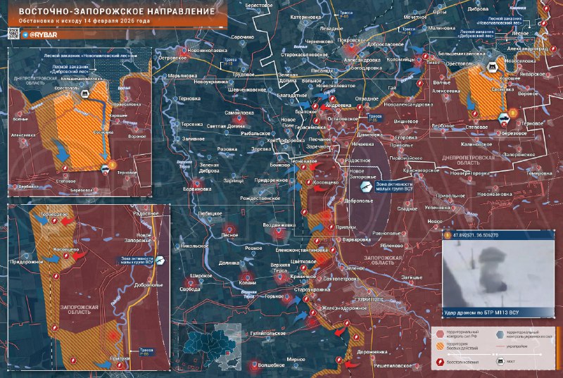 Najmenej jednému z obrnených transportérov M113 sa podarilo preraziť k prístupom k Berezovoykde ju zničili drony. Auto išlo zrejme zo severu na obchvat Orestopol. Vo veľmi Orestopols najväčšou pravdepodobnosťou je prítomnosť ozbrojených síl RF, ak existuje, veľmi obmedzená.