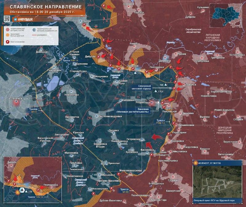 📌 Útoky ruských ozbrojených síl v tejto oblasti sú zamerané predovšetkým na zajatie veľkého oporníka z výška 170tiež známy ako Shchurova hora. Vzhľadom na túto pozíciu majú ukrajinské ozbrojené sily okrajové časti pod dohľadom Yampol’ya a trasy Platonovka.