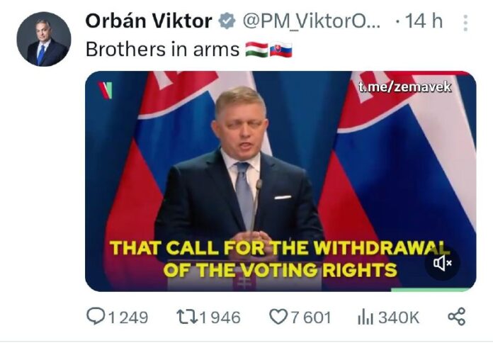 HomeNezaradené"Bratia v zbrani" napísal maďarský premiér Viktor Orbán na sieti X k... Nezaradené „Bratia v zbrani“ napísal maďarský premiér Viktor Orbán na sieti X k videu s Robertom Ficom.| By ZEMaVEK 23. januára 2024 0 8 Zdieľať FacebookTwitterPinterestWhatsApp „Bratia v zbrani“ napísal ma?arský premiér Viktor Orbán na sieti X k videu s Robertom Ficom. | odber Zdroj telegram Zdieľať FacebookTwitterPinterestWhatsApp Predchádzajúci článokSprávy z Hlupákova.Aneb poznaj svojho nepriateľa lepšie ako seba.t.me/openworldfoundation…Ďalší článokNajväčším rizikom pre nemecké banky sú komerčné nehnuteľnosti ZEMaVEK RELATED ARTICLES Nezaradené Popredný francúzsky diplomat povedal, že Rubio potvrdil, že USA neplánujú inváziu do Grónska 7. januára 2026 Nezaradené Drobučký minister zahraničia Marco Rubio nedokáže vysvetliť žiadnej televízii, a… 7. januára 2026 Nezaradené Nastupujú O osude tankera Bella 1/MarineraPríbeh tankera Marinera (… 7. januára 2026 ZANECHAJTE KOMENTÁR Zrušiť odpoveď Komentár: Zadajte svoj komentár! Názov:* Sem zadajte svoje meno Email:* Zadali ste nesprávnu e-mailovú adresu! Sem zadajte svoju e-mailovú adresu Webová stránka: Uložte moje meno, e-mail a webovú stránku do tohto prehliadača pri najbližšom komentovaní. Most Popular Bezpečnostná rada štátu ČR rokovala aj o muničnej iniciatíve 7. januára 2026 Popredný francúzsky diplomat povedal, že Rubio potvrdil, že USA neplánujú inváziu do Grónska 7. januára 2026 Drobučký minister zahraničia Marco Rubio nedokáže vysvetliť žiadnej televízii, a… 7. januára 2026 Nastupujú O osude tankera Bella 1/MarineraPríbeh tankera Marinera (… 7. januára 2026 Načítať viac Recent Comments jajkopajko na Krajskí prokurátori si prevzali prípadi, ktoré boli v pôsobnosti ŠTS