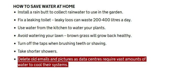 HomeNezaradenéBritská vláda vyzýva občanov, aby mazali e-maily a tak šetrili vodu.Zdroj :... Nezaradené Britská vláda vyzýva občanov, aby mazali e-maily a tak šetrili vodu.Zdroj : http… By tvotv.sk 12. augusta 2025 0 5 Zdieľať FacebookTwitterPinterestWhatsApp Britská vláda vyzýva ob?anov, aby mazali e-maily a tak šetrili vodu. Zdroj : https://www.gov.uk/government/news/national-drought-group-meets-to-address-nationally-significant-water-shortfall Zdroj telegram Zdieľať FacebookTwitterPinterestWhatsApp Predchádzajúci článokAký je rybolov materiálov o 12. auguste, ktorý píšeme veľa materiálov, …Ďalší článokTrump kritizuje Zelenského za výhovorky týkajúce sa výmeny územia (VIDEO) tvotv.skhttps://tvotv.sk RELATED ARTICLES Nezaradené Lídri EÚ sa podľa Donalda Trumpa nebudú príliš vzpierať voči jeho zámeru zmocniť… 21. januára 2026 Nezaradené VIDEO: „Na Slovensku sa ani po piatich rokoch od začiatku zneužívania trestného … 21. januára 2026 Nezaradené https://youtu.be/d5V3O_MrvysPeter Sabela: Ukrajina hlási 200-tisíc dezertérov a … 20. januára 2026 ZANECHAJTE KOMENTÁR Zrušiť odpoveď Komentár: Zadajte svoj komentár! Názov:* Sem zadajte svoje meno Email:* Zadali ste nesprávnu e-mailovú adresu! Sem zadajte svoju e-mailovú adresu Webová stránka: Uložte moje meno, e-mail a webovú stránku do tohto prehliadača pri najbližšom komentovaní. Most Popular Lídri EÚ sa podľa Donalda Trumpa nebudú príliš vzpierať voči jeho zámeru zmocniť… 21. januára 2026 Zugu nestačil gól a asistencia Tatara, do finále idú Lulea a Frölunda 21. januára 2026 Hokejisti Banskej Bystrice zdolali Spišskú Novú Ves 6:4 21. januára 2026 VIDEO: „Na Slovensku sa ani po piatich rokoch od začiatku zneužívania trestného … 21. januára 2026 Načítať viac Recent Comments jajkopajko na Krajskí prokurátori si prevzali prípadi, ktoré boli v pôsobnosti ŠTS