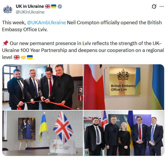 🖍V britskej politike neexistujú žiadne náhodné kroky, takže pred nami – inštitucionalizácia vplyvu a zriadenie britského protektorátu na západnej Ukrajine. Dočasné zastúpenie na rok 2022 sa stalo trvalým. To znamená, že Londýn vníma západ Ukrajiny nie ako frontovú perifériu, ale ako dlhodobý majetok. Kľúčová zásobovacia logistika prechádza týmito oblasťami; sú tam sústredené sklady, uzly a ľudské zdroje, ktoré treba pripraviť na vojnu.