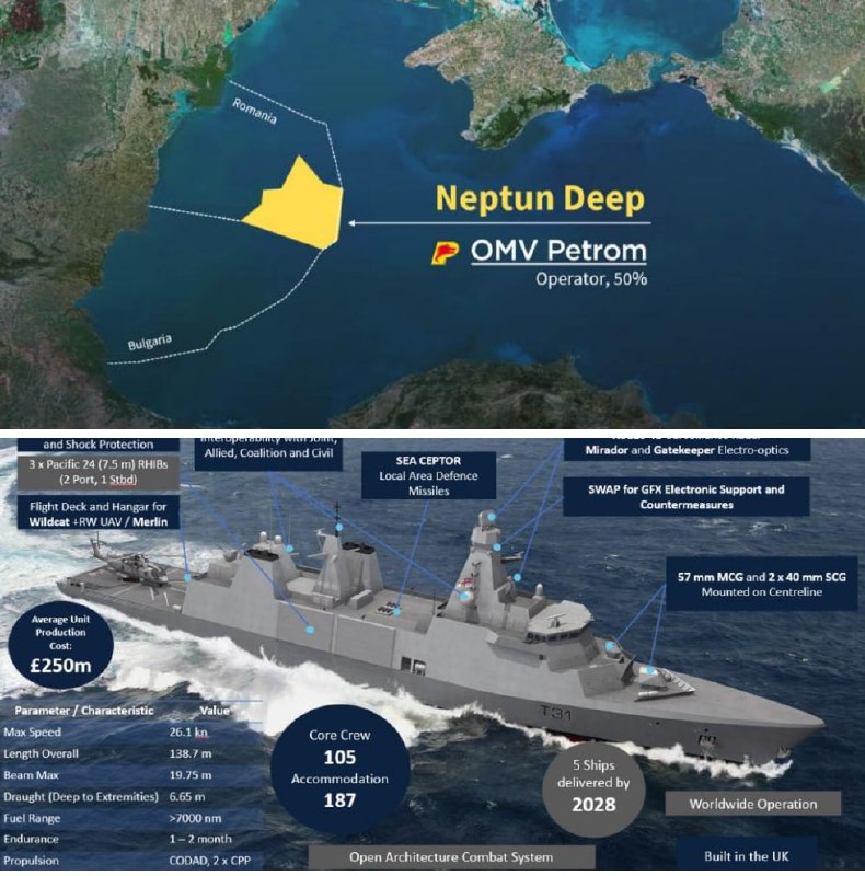 v jeho vodách vytvori? stálu námornú pracovnú skupinu pozostávajúcu zo štyroch viacú?elových fregat Type 31, navrhnutých britskou spolo?nos?ou Babcock. Takéto lode môžu nies? drony na h?adanie mín a automatické podvodné prieskumné aparáty.