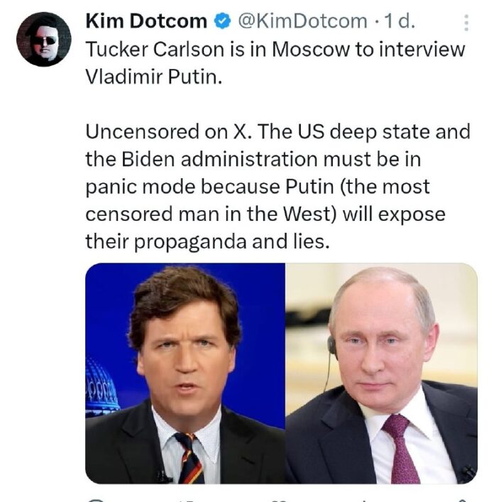 „Tucker Carlson je v Moskve, aby urobil rozhovor s Vladimirom Putinom,“ tvrdí Kim Dotcom.