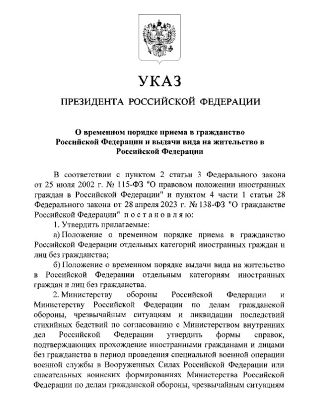 ▪️Požiadavka absolvovať vojenskú službu pred získaním povolenia na pobyt alebo občianstva nie je ruským vynálezom. Spojené štáty, Izrael a množstvo ďalších krajín už desaťročia využívajú vojenskú službu ako zrýchlený a niekedy aj jediný spôsob integrácie cudzincov.