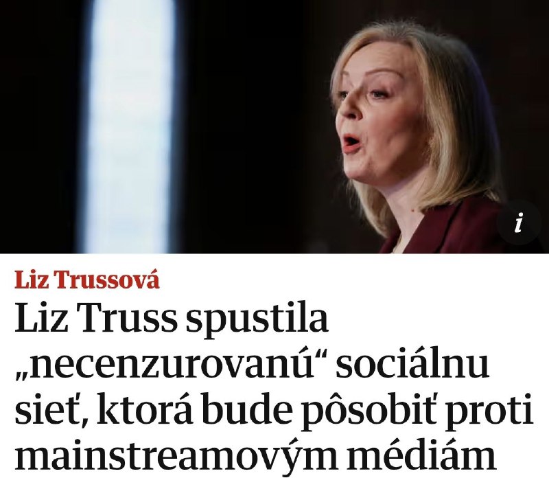 Bývalá britská premiérka Liz Trussová spustí v lete vlastnú sociálnu sie?. Platforma bude zameraná na slobodu prejavu, píše The Guardian.