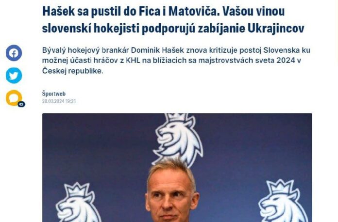 Bývalý hokejový brankár Dominik Hašek kritizuje slovenskú vládu kvôli postoju k možnej ú?asti hrá?ov KHL na majstrovstvách sveta v SR.