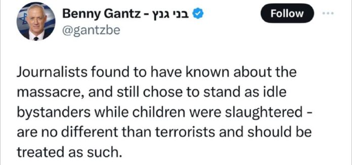 Bývalý izraelský minister obrany Binjamin Ganc o novinároch, ktorí sa ocitli na mieste útoku Hamasu 7. októbra: