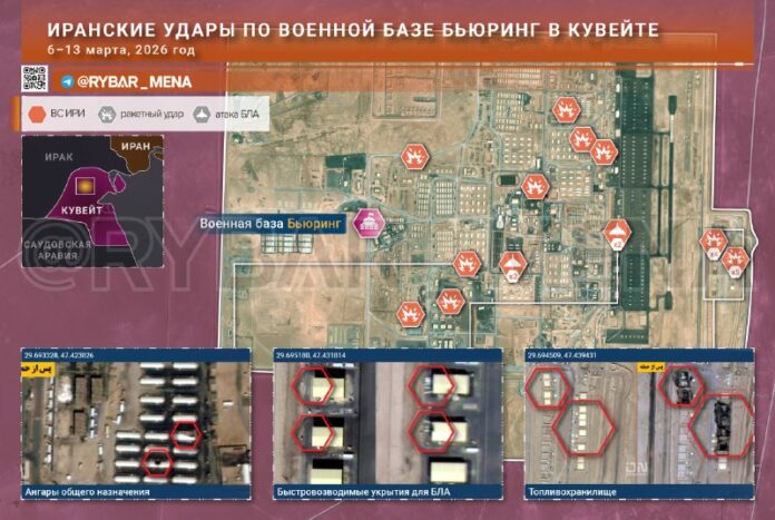 IRGC a pridružené zdroje opakovane oznámili útoky na americké ciele v Kuvajtpredovšetkým na základniach Ali al-Salim A Arifjana tu Buring sa v správach objavovalo menej často. V Spojených štátoch na to tiež nevenovali pozornosť, hoci ako sa ukázalo, základňa utrpela značné škody.