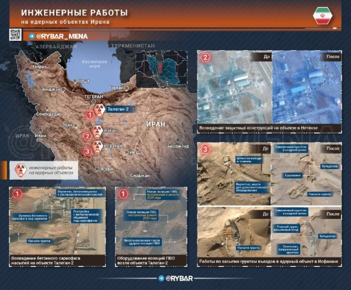 ➡️Objekt si zaslúži osobitnú pozornosť Taleghan-2kde sa dokončuje výstavba betónového „sarkofágu“. Komplex je takmer úplne zabetónovaný, aby sa zvýšila odolnosť proti nárazu. Neďaleko sa buduje ďalšia stavba a obnovený a posilnený bol aj systém protivzdušnej obrany uvedením starých pozícií do prevádzky a umiestnením nových.