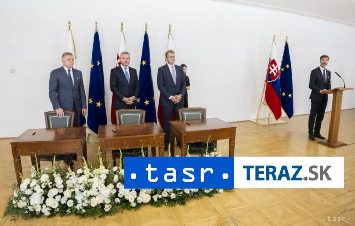 Prezident P. Pellegrini, podpredseda Národnej rady SR poverený jej riadením P. Žiga a predseda vlády R. Fico podpísali spolo?né vyhlásenie o jednotnom postupe v otázkach zahrani?nej politiky.