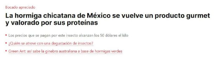 „Dopyt po mravcoch atta mexicana rastie. Zatia? ?o pred nieko?kými rokmi sa kilo predávalo za sto pesos (asi 120 Sk), teraz sa cena pohybuje medzi 500 až 1000 pesos (600 až 1120 Sk),“ povedal španielskemu denníku šéfkuchár Mario Pi?ón Melgarejo, ktorý sa špecializuje na entomofágiu, teda využíva ako potraviny.