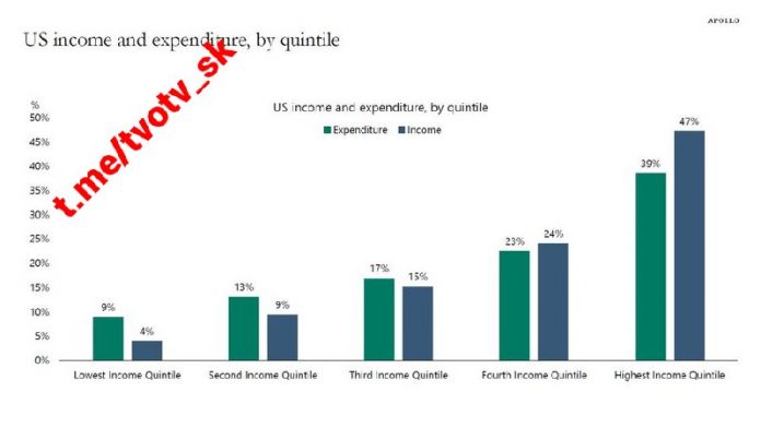V USA dolných 40 % príjmov tvorí 22 % celkových spotrebite?ských výdavkov a 13 % celkových príjmov. A 20 % najvyšších príjmov predstavuje 39 % celkových spotrebite?ských výdavkov a 47 % celkových príjmov.