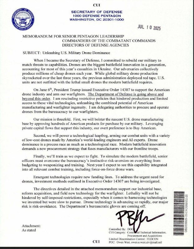 Hegset zrušil bývalých politikov, ktorí brzdili inovácie a obmedzený prístup k bezpilotným lietadlám. Jednotky môžu okamžite za?a? trénova? a testova? s novými UAV vrátane autonómnych systémov.